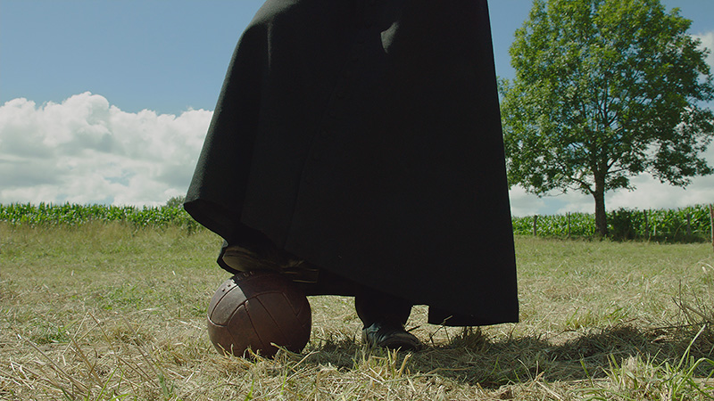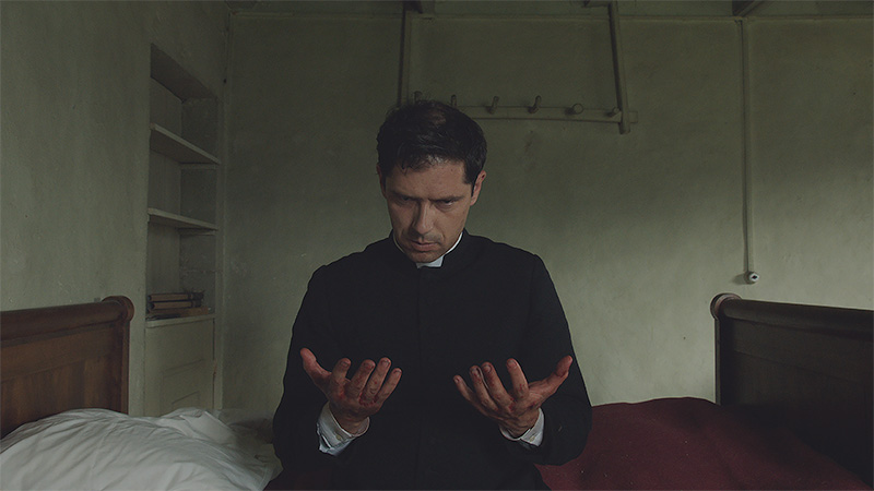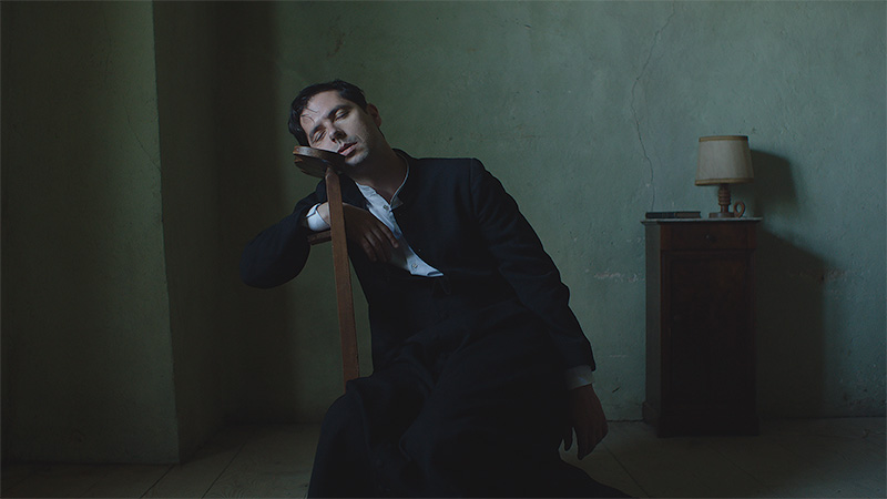 Yes… And for this to work, the talent of Melvil Poupaud on the voice over has been crucial. His smooth elocution, his own way of making words sound full of flavor, makes the viewer easily fall under his charm. We recorded all the voice over “on location”, during the shoot. Melvil was therefore completely immersed in the character when delivering the text. Often the recording took place during weekends. At the beginning of the week, he would put his cassock back on to immerse back into the small world of the priest. To play this multi-faceted character, Melvil managed to be both handsome, and ridiculous, intelligent and mediocre, gracious and pathetic. He managed to embody all these contrasts on set, with subtlety and generosity.