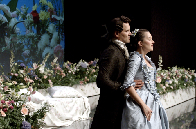 Pourtant, nous serons dans le jeu. Nous vivrons en un temps concentré des événements qui se sont étalés sur sept décennies, reconstitués à partir de souvenirs restitués ou inventés. Les chanteurs se mêleront aux acteurs, les décors du théâtre façonneront, les costumes transformeront, les voix enchanteront et, par-dessus tout, sonnera la musique la plus légère, la plus profonde, la plus intelligible qui soit. Et, sans transition perceptible, nous nous retrouverons complètement ailleurs, au XVIIIe siècle, dans un Château de Bohême, où nous assistons à la rencontre d’Elisa et de Giacomo.