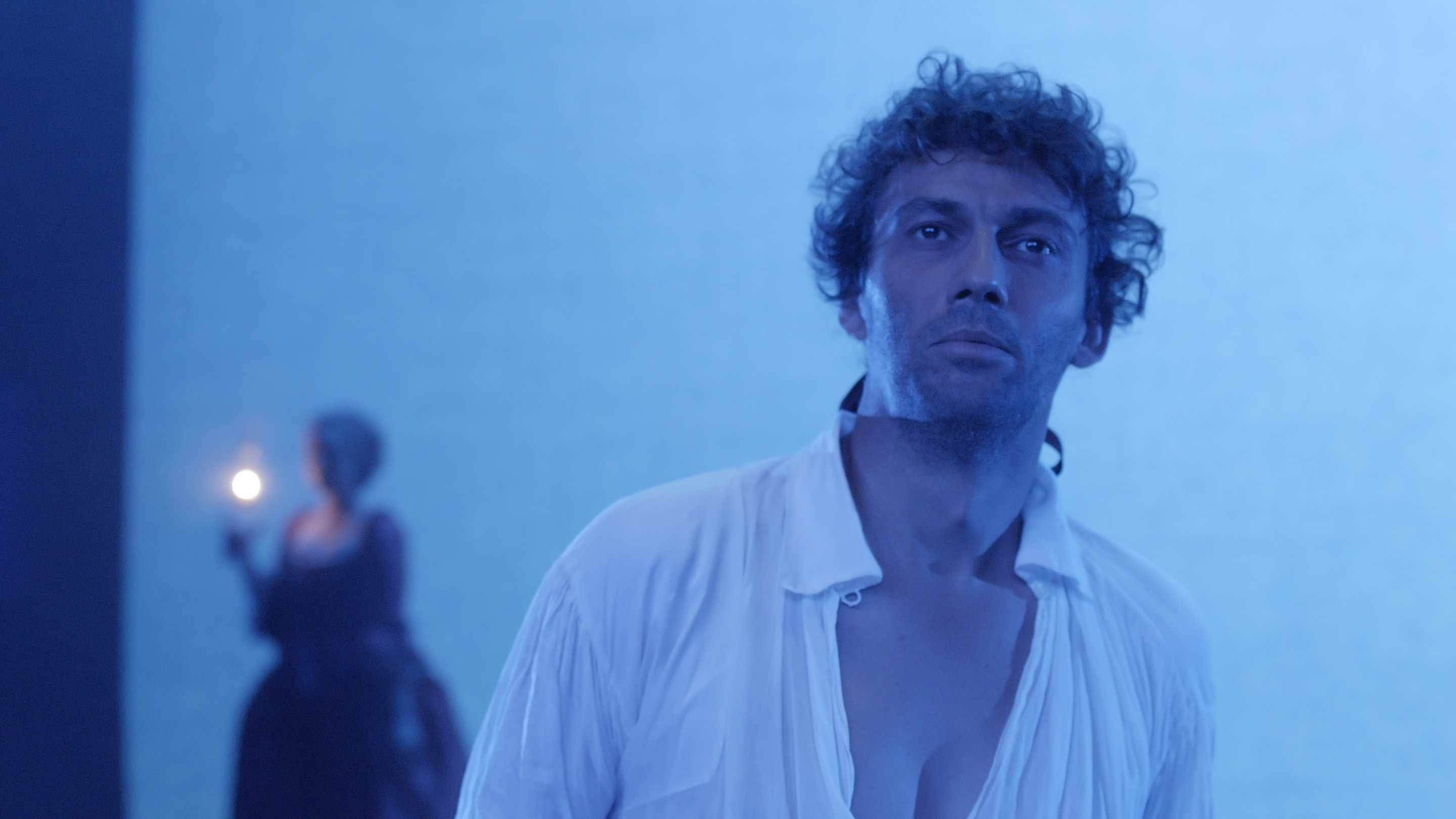 Ce sont les deux mêmes que sur la scène du théâtre, mais autour d’eux, tout est différent. Ici, personne ne chante, les choses sont plus simples et moins grandioses. L’action se concentre sur le grand duel entre Elisa et Giacomo, les deux idéalistes désillusionnés. Nous les regardons de près faire connaissance, se frôler, s’impressionner, se repousser et finir par s’apprivoiser. C’est une rencontre qui exacerbe tous les espoirs et préjugés qu’ils ont accumulé dans leur vie. Il est presque trop tard… mais n’est-il jamais trop tard pour partager un moment d’intimité et de compréhension mutuelle?
