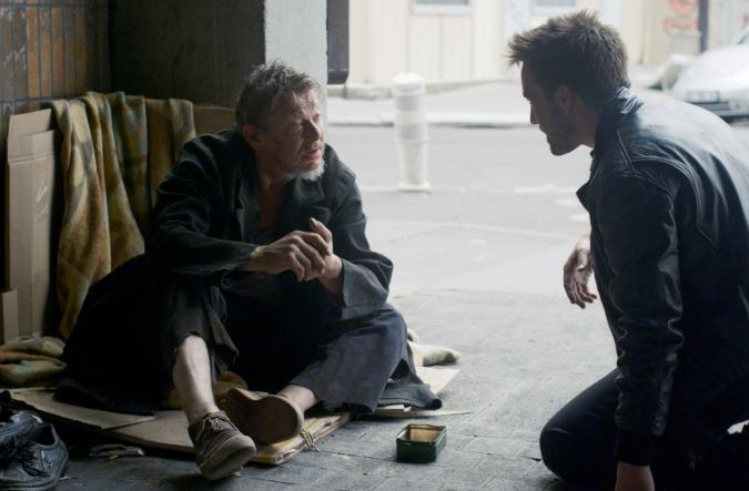 Ce personnage est né d’un poème que j’avais écrit et qui est encore en partie présent dans le film. Un poème autour d’une pièce de monnaie, cet objet tout simple qui permet de rapprocher beaucoup de notions contraires avec le pile ou face. La figure du clochard céleste m’a été inspirée par Les Portes de la nuit de Carné où ce personnage est joué par Jean Vilar. Il y a aussi une référence à Faust dans le film de René Clair La Beauté du diable. Pour la première scène avec le clochard, j’avais à l’esprit la scène de pile ou face dans No Country for old men des frères Coen, avec ce très long champ-contrechamp.